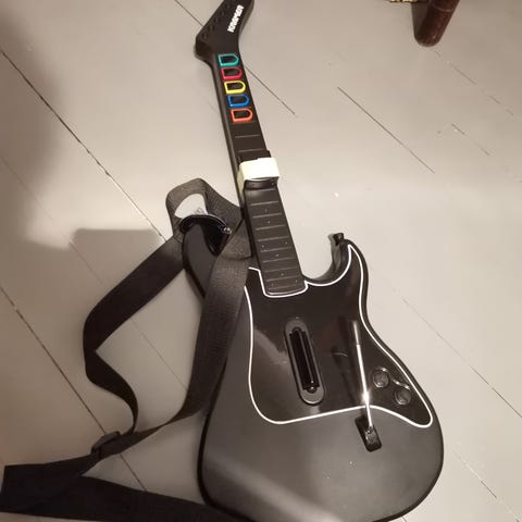 Kaksi kappaletta Guitar Hero III kitaroita PlayStation 2:lle alkuperäisessä kotelossa. Paketissa joitain kolhuja. Viimeksi kun käytetty ovat toimineet. Valitettavasti nyt ei ole mahdollisuutta kokeilla toimivuutta. Paketin koko 74x28x13cm