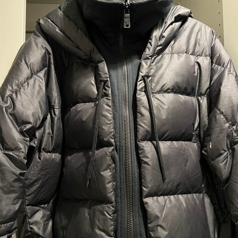 Hyvä untuvatakki, kokomerkintää ei ole, mutta sanoisin XS/S, kai kai 45cm olka-helma 63cm ja olka-hiha 64. Nouto merihaasta tai postitus.