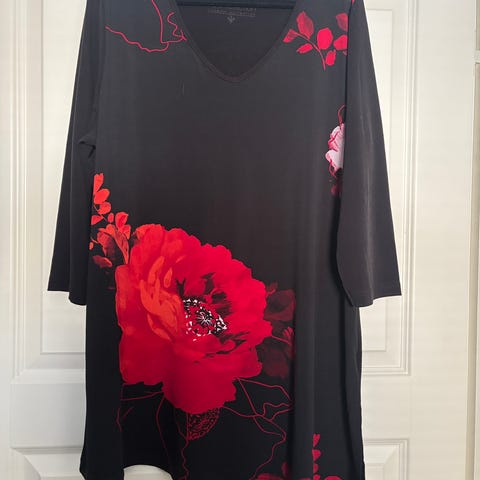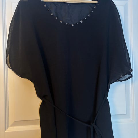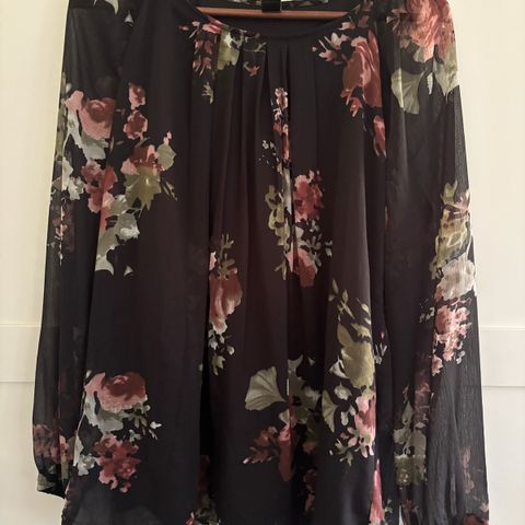Musta sifonkitunika ruosteenvärisillä lehdyköillä. Koko XXL, kai-kai 64 cm. Kuin uusi.