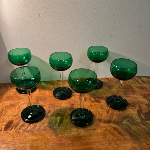 Lasit ovat erittäin hyvässä kunnossa. Ostettu antiikkiliikkeestä, eikä niitä ole käytetty – säilytetty lasivitriinissä.