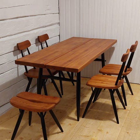 Hakusanat: musta, huonekalu, huonekalut, tapiovaara, design huonekalut, Tuoli, Valmistaja, design, pohjoismainen minimalismi, suomalainen, käytetyt huonekalut, tuolit, laukaan puu, puu, puinen, pöytä, pöydät, ruokapöytä, ruokatuoli, ruskea