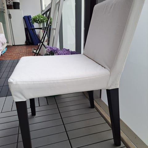 Ikean tuoli, toiminut meillä työpöydän tuolina, tehty ruokapöydän tuoliksi.