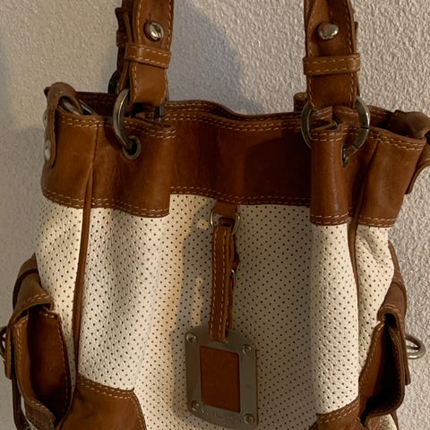 Materiaali 100% nahkaa, italialainen brändi Eleganzza. Sisällä vetoketjullinen tasku ja kaksi tavallista