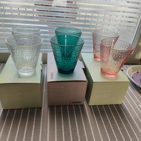 Iittalan uusi Kastehelmi setti, vain käyttöönottopesty, mutta ei ole käytetty. Väri Kanerva