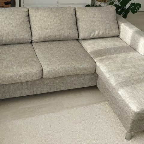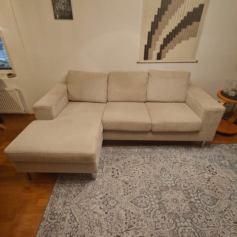 Divaani osan voi asettaa kumpaan päätyyn sohvaa tahansa. Divaanin sisällä säilytyslokero.