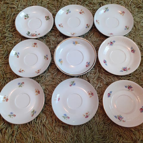 Valkoisia Arabia Forte sekä sekalaisen merkkisiä lautasia