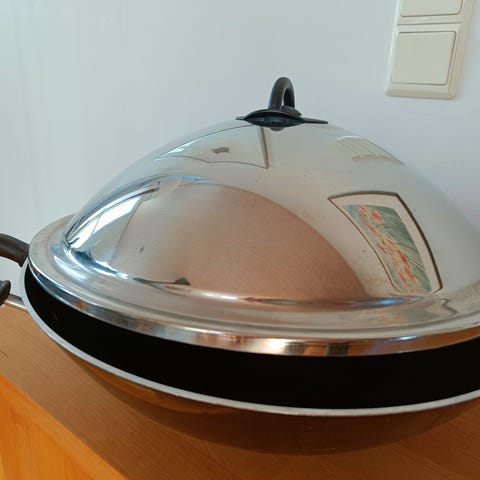 IKEA wokkipannu, jossa metallinen kahva. Ehkä muutaman kerran käytetty.