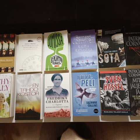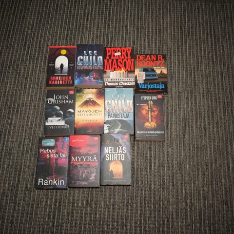 Paljon kirjoja, kovakantisia ja pokkareita, suomeksi ja englanniksi. Kysy hintoja, tehdään erillinen toridiili paketti haluamistasi kirjoista.