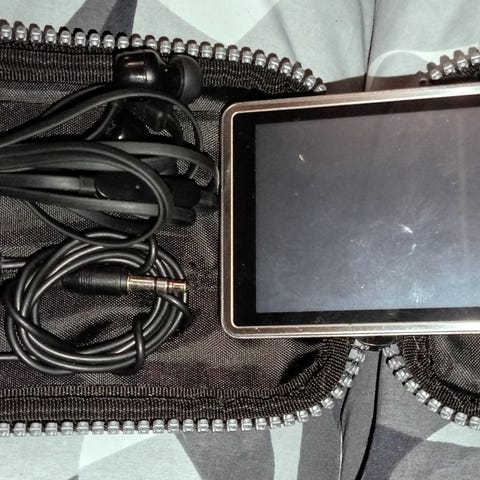 Ei laturia, eikä kuulokkeita. Pitkäkestoinen akku 👍🏻 Testattu toimivuus.