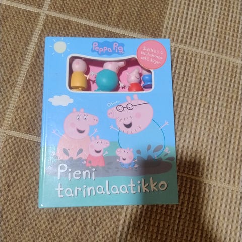 Kokoelma lastenkirjoja, sisältäen muun muassa Peppa Pig -kirjan ja muita värikkäitä kuvakirjoja. Kirjat sopivat lapsille ja sisältävät erilaisia tarinoita ja kuvituksia.