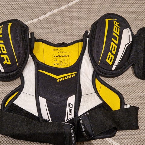 Myydään Bauerin polvi- sekä kyynärsuojat noin 7-9 vuotiaalle. Käytön jälkiä löytyy, mutta kaikki ehjiä ja tarroissa on pitoa. Näiden kanssa kelpaa kaatuilla jos luistelu ei vielä täysin suju ja menee varmasti myös jääkiekkoa harrastavalle.