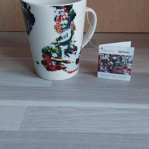 Ilo muki Minna Immosen suunnittelema virheetön. Hertta muki virheetön sisäpuolelta. Alareuna on saanut kolhun ,joka on liimattu. Ei vaikuta käyttöön. Ehkä parempi tiskata käsitiskillä. Myydään yhteishintaan. Hintaa alennettu Herttamukin osalta. 35 + 15. Savuton ja kotieläimetön talous.