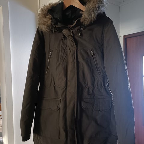 Hyväkuntoinen perustalvitakki leveällä kartalla.