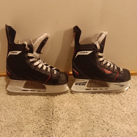 Laatu luistimet. Koko 13.0D/32 EUR. Kuluneisuutta on, mutta sekä kenkäosat että terät ovat ehjiä. Terissä on paljon kulutusvaraa.
