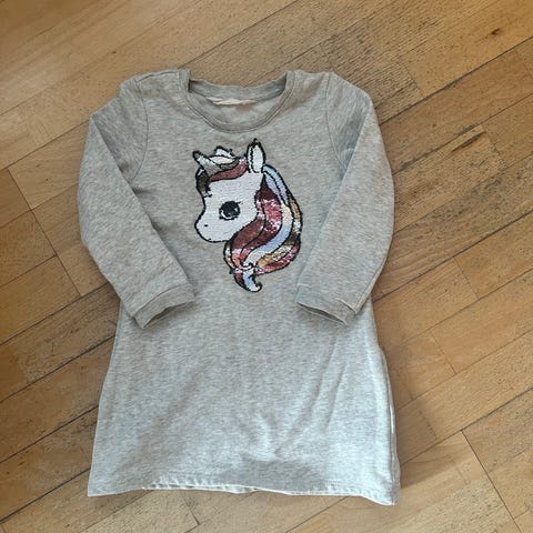 Sampsukka lyhythihainen yksisarvismekko, yksisarvistunika, vastaa kokoa 104. Lempimekko