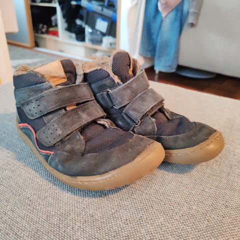 Myydään Froddon paljasjalkakengät, koko 32, musta väri. Muuten hyvä kunto (pohjat, kärjet, saumat, vuori, kengännauhat), mutta toisen kengännauhan kiristysmekanismin lukkopalanen on irronnut. Ei ole haitannut käytössä, solmimme tilalle solmun. Saa tulla kokeilemaan!