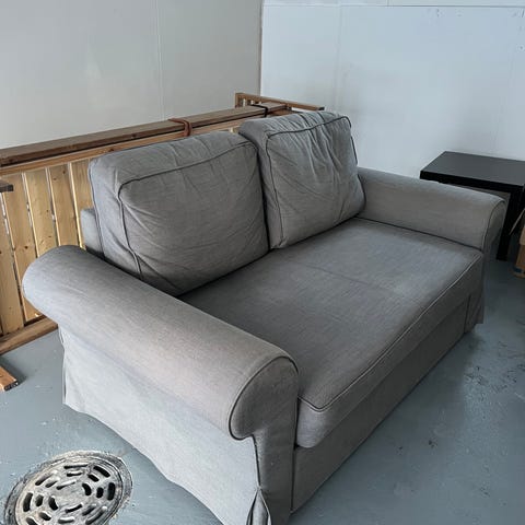 Myydään BRIMNES sohvasänky. Ei levity, yhden nukuttava. 2 vetolaatikkoa. Lastulevyssä sisäpuolella esteettistä halkeamaa ja naarmua, myös sormenpäätä pienempiä naarmuja ulkopuolella ja tämä huomioitu hinnassa. Tukeva ja pysyy kasassa, mutta ei uuden veroinen.