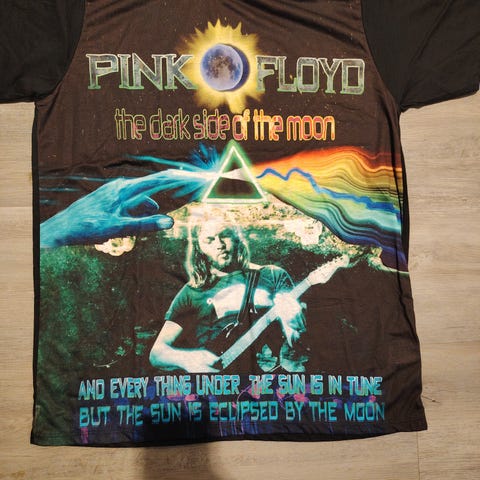 Myydään kerran käytetty virallinen musta Pink Floyd Dark Side of The Moon t-paita. 50th anniversary malli. Koko L.