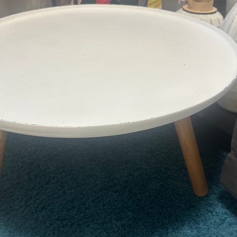 Muutaman vuoden käytössä ollut sivupöytä/olohuoneen pöytä. Muutama haalea huomaamaton jälki pinnassa.
