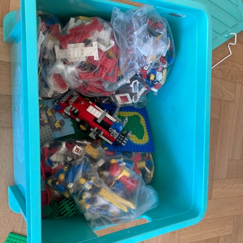 Myyntiin puolilaatikollista legoja (noin 6 kg), joista suurin osa ilmeisesti Legon Fabuland-sarjaan kuuluvia paloja.