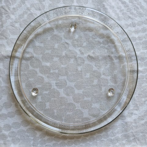 Ylimääräiseksi jäänyt lasilautanen mikroon 5€.