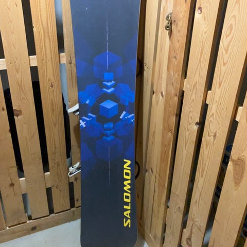 Myydään Salomon lumilauta, jossa on siteet.