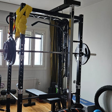 Sivutalja johon sopivat painot ja tangot eivät kuulu hintaan vaan pitää sopia erikseen