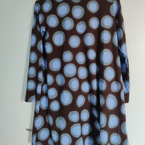 Marimekko Arkimekko mekko, väriltään musta, valmistettu puuvillasta. Naisten koko S. Mekossa on musta pohjaväri ja valkoiset pilkkukuviot.