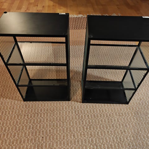 Annetaan iso hyllykkö jossa päädyissä vitriinit missä myös valot paikoillaan. 180*200*43cm. Omat kantajat mukaan!