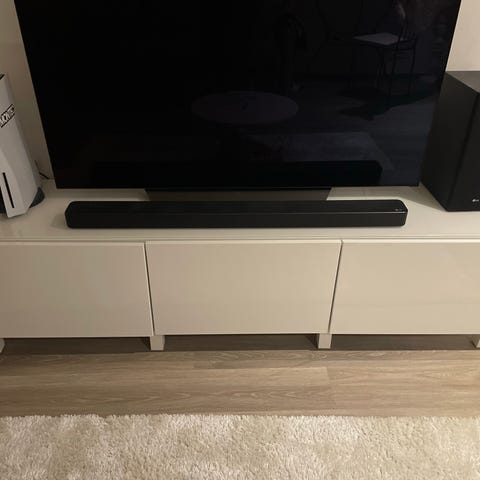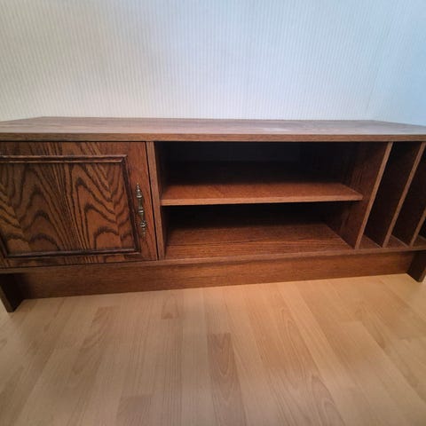 Vaalea puinen TV-taso lasiovilla ja laatikoilla