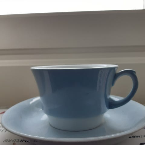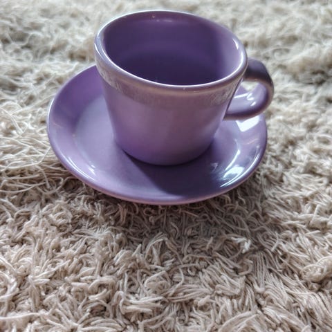 Kupin korkeus on 4,5 cm, halkaisija 6 cm ja tilavuus 0,65 dl. (Lautasen halkaisija 10cm.)