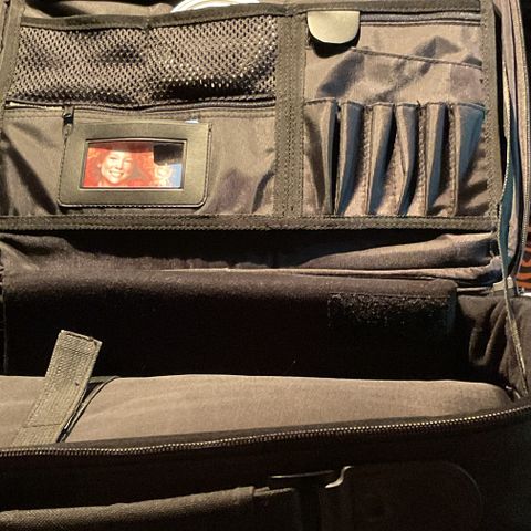 Asus tietokonelaukku. Olkahihna ja kahva, kaksi taskua.
