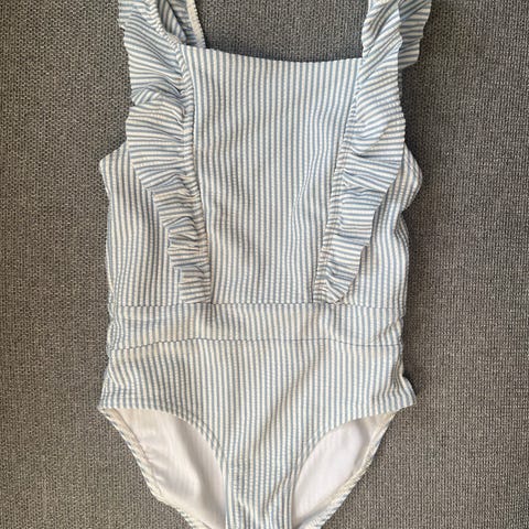 110 kokoinen uimapuku täyskellohelmalla. Itse siististi ommeltu. Kunto erinomainen muuten, mutta toisesta olkaimesta lanka katkennut n 2 cm matkalta. Ei oo vaikuttanut mihinkään.