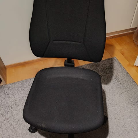 Myynnissä Maskusta ostettu harmaa Art- työtuoli. Asiallisessa kunnossa pinnat sekä pyörät ja korkeudensäädön mekanismi toimii.