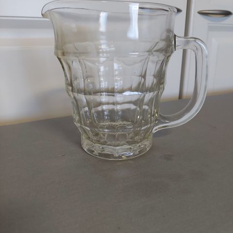 lasinen kallo-kannu ja muki, joissa on kalloaiheinen muotoilu. Kannussa on kapea kaula ja mukissa on musta kansi. Molemmat ovat läpinäkyvää lasia.