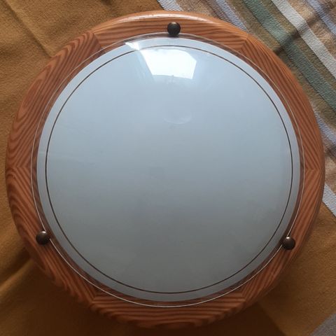 Varsin siisti metallia ja maitolasia oleva isohko valaisin kattoon. Nurkista n. 50*50cm, korkeimmalta kohdaltaan ehkä n. 10cm syvä. Kahdelle E27-lampulle, energiansäästölamput mukaan. Ainoastaan nouto.