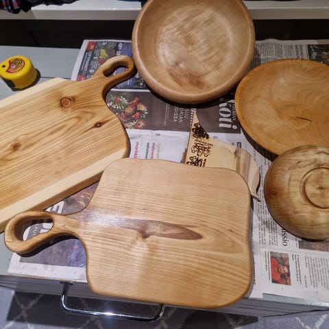 Erikokoisia leikkuulautoja pihlaja,koivu,vaahtera ja omenapuu sekoituksia ,sekä männystä tehtyjä