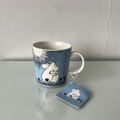 Kuvan mukainen tarrallinen,lapullinen uusi Rakkaus Sininen muumimuki. Nouto,postitus ostajan lukuun tai toridiili.