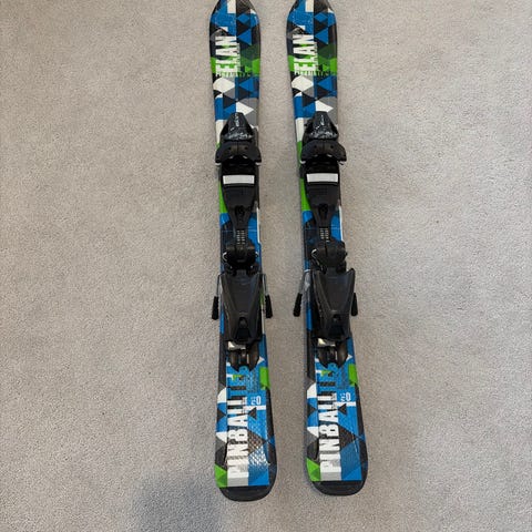 Lasten laskettelusukset valmiit seuraavalle laskijalle! Pituus 90 cm. Siistit ja toimivat sukset, joissa on normaaleja käytön jälkiä.