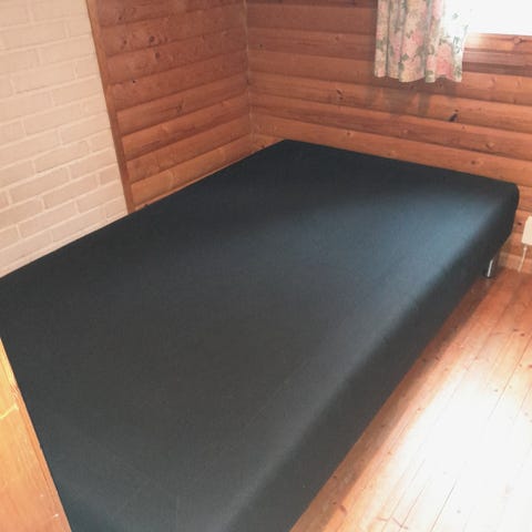 Runkopatja jossa rungossa käytön jälkiä. Patja kuuluu hintaan, mutta hieman likainen. Sängyn jalat ovat irrotettavissa.