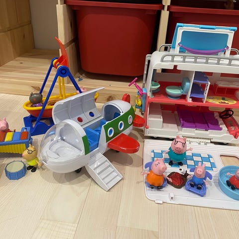 Pipsa Possu junalelu, jossa on veturi ja kaksi vaunua. Sisältää 4 hahmoa.