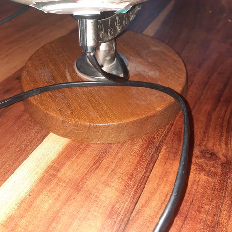 Pallo on valaistu, liitosjohdossa litteä pistoke ja kytkin.
