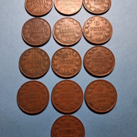 1 pennin kuparikolikot vuosilta; 1891, 1893,