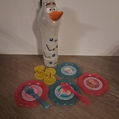 Hyväkuntoisia muovisia leikkiruokia ja muovinen astiasto. Nopea nouto Kellokoskelta.