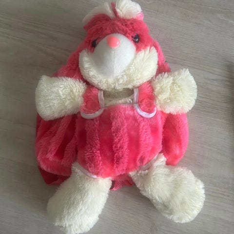 Myydään söpö pieni keinonahkainen pupureppu. Repun hihnat saa myös vetoketjulla yhdeksi.