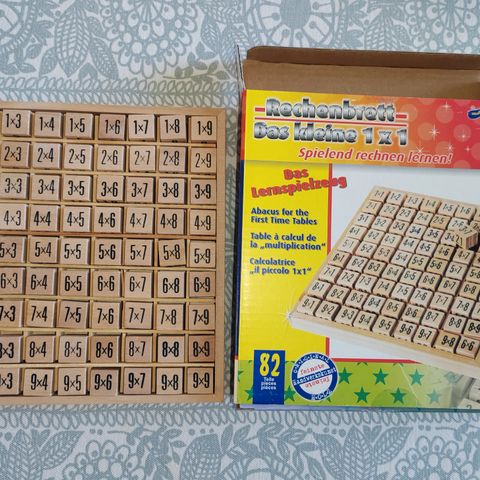 Hieno puinen kertotaululevy sisältää irrotettavia palikoita, joissa on kertolaskuja. Puiset kuutiot, joissa vastaus löytyy kuutiota nostamalla. Lapsille mukava tapa harjoitella. Sopii opetus- ja harjoittelukäyttöön matematiikan kertotaulun oppimiseen.