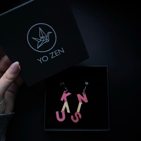 Ihanat kaikkialta loppuunmyydyt Yo Zenin ”minä” puiset korvakorut.