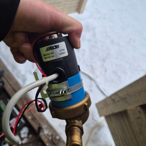 Alden letkujen väliin tuleva säädettävä kiertovesipumppu. Ollut vähän aikaa kiinni ja varalla.