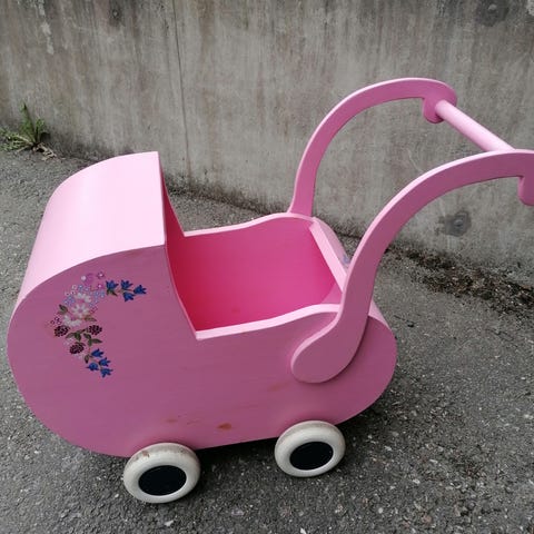 Tyylikkäät mustat nukenvaunut seuraavalle leikkijälle. Vaunukoppa mahdollista kääntää myös istuma-asentoon rattaiksi. Moneen eri asentoon säädettävä työntöaisa. Alhaalla kätevä kori tavaroille. Runko metallia.