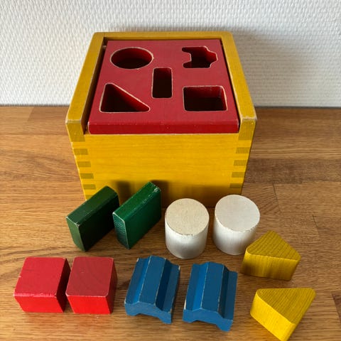 Siistikuntoinen Jukka Askare laatikko ja uutta vastaavassa kunnossa olevat palikat (kaikki 10 tallella).